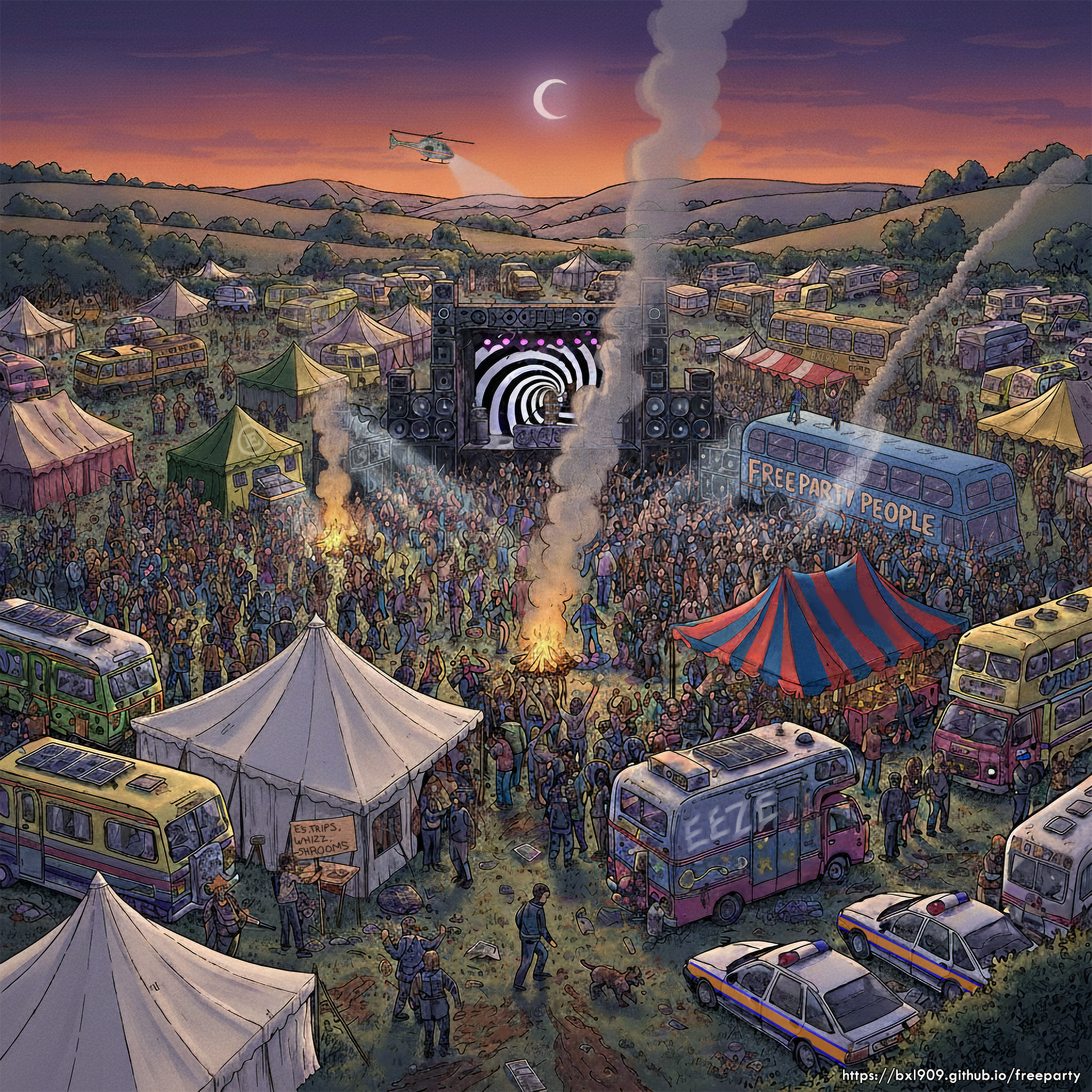 In the early 1990s, the UK was electrified by an underground revolution — the free party scene. A coming together of tribes - travellers, city-living ravers, squatters, activists, artists and musicians, these illegal, open-air gatherings united cultures with a shared sound and purpose on common land, fields, warehouses and abandoned quarries across the country.