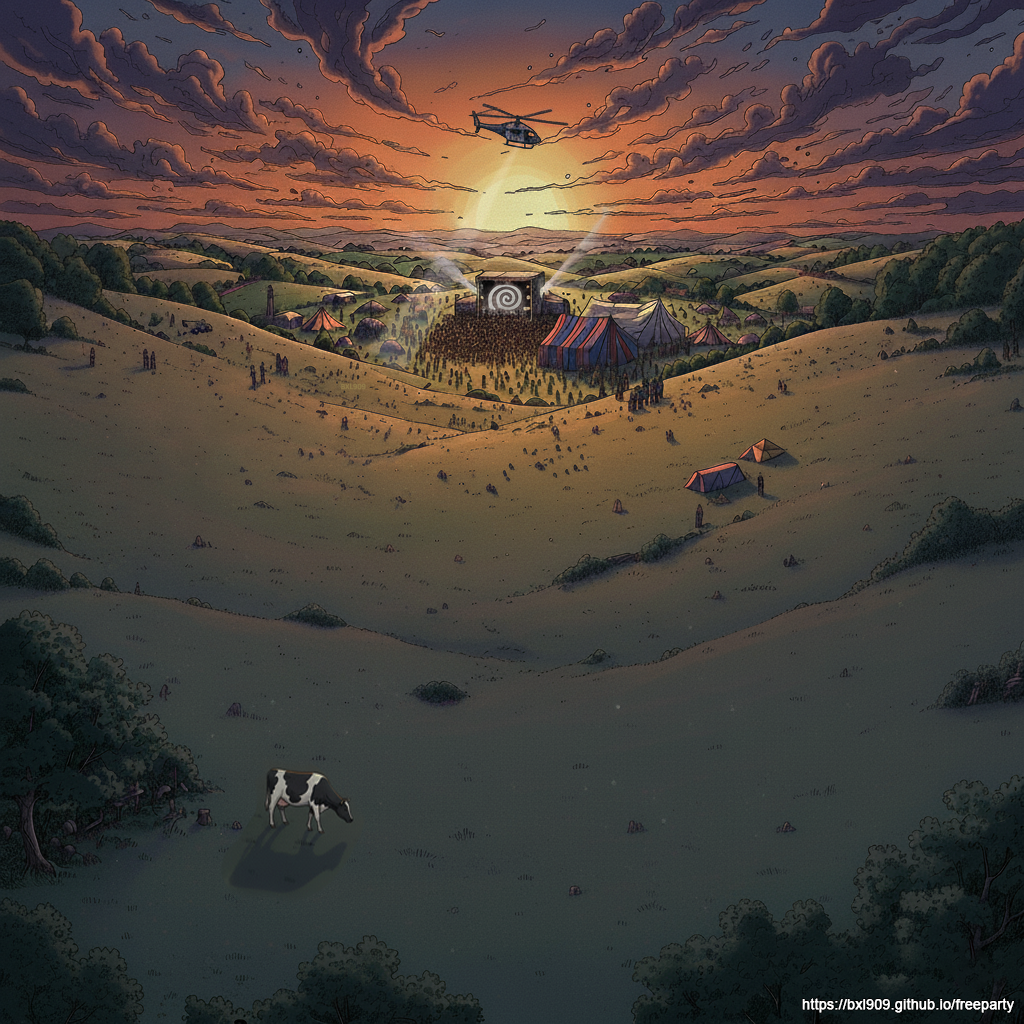 At the time we just wanted to party, but these weren’t just parties — the hedonism became resistance. Against commercial clubs. Against police crackdowns. Against the looming Criminal Justice and Public Order Act of 1994, which targeted “repetitive beats” and small gatherings of people. Castlemorton in 1992 — with 25-40k attendees — became the final straw that ignited the bill.